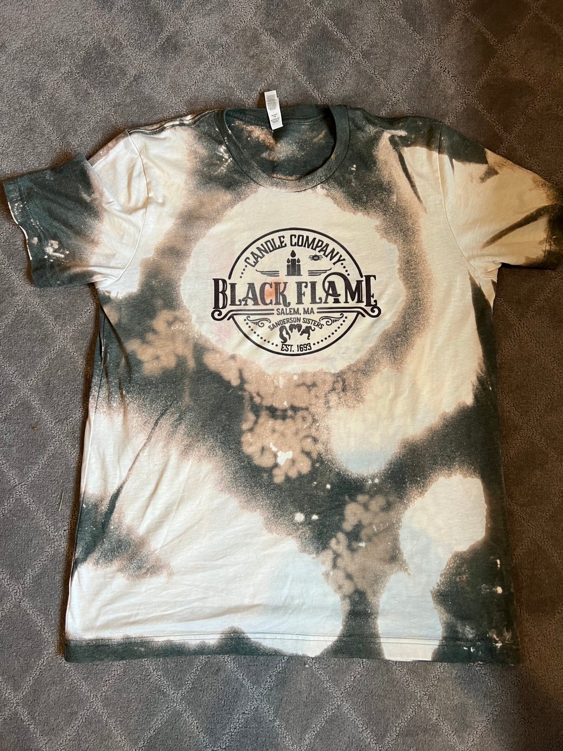 Hocus Pocus - Black Flame candle bleached shirt.